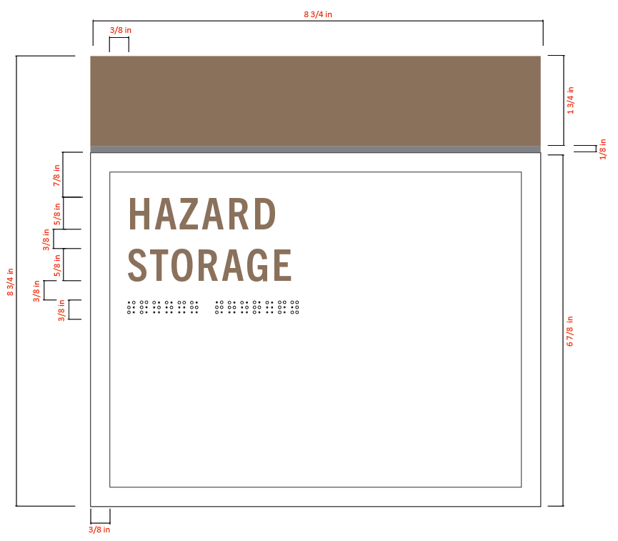 A twenty-nine page technical drawing proof booklet was sent for the proofing process with various quantities and various types of signage (Room ID, Decorative Room ID, Exit, T24 Restroom signs, etc). Proofing shows visuals with dimensions and placeholders of grass (the image of the sign was supplied after the client was able to send a photo of the sign, so the placeholder of the grass was used). The client was made aware of the placeholder until an image of their sign was supplied.